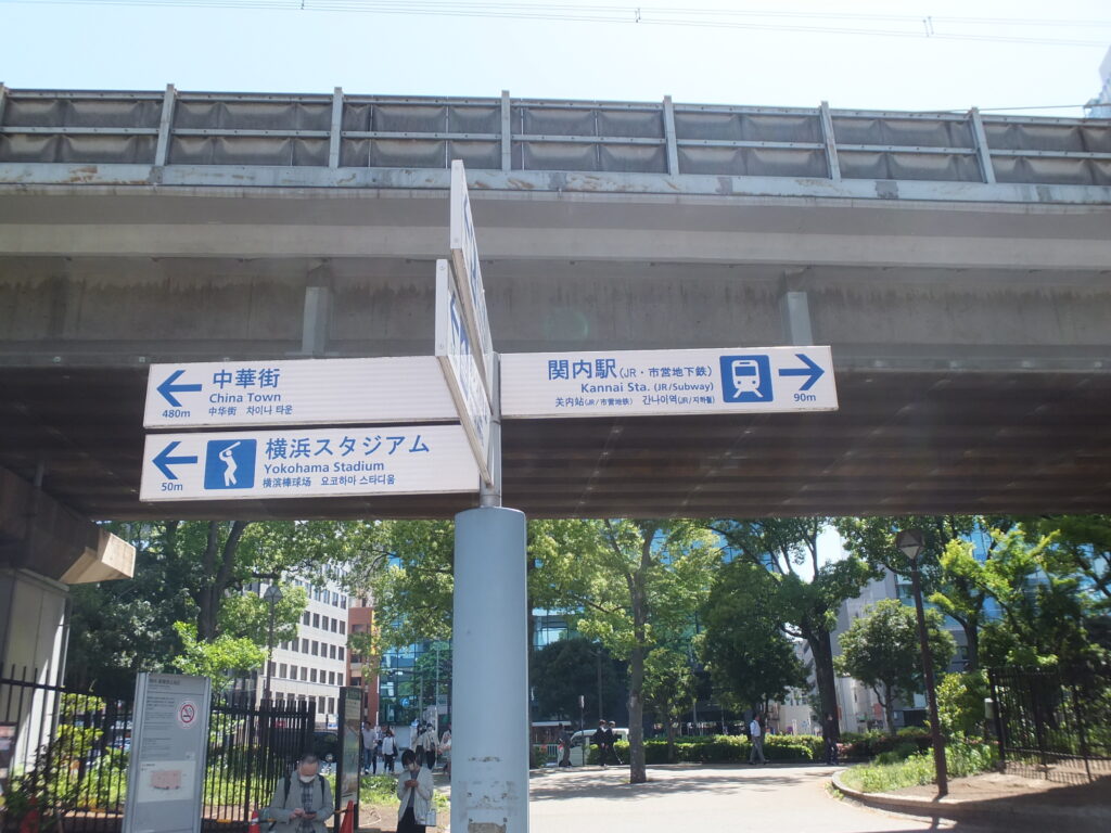 曲がった先を関内駅南口方面に真っ直ぐ行きましょう。