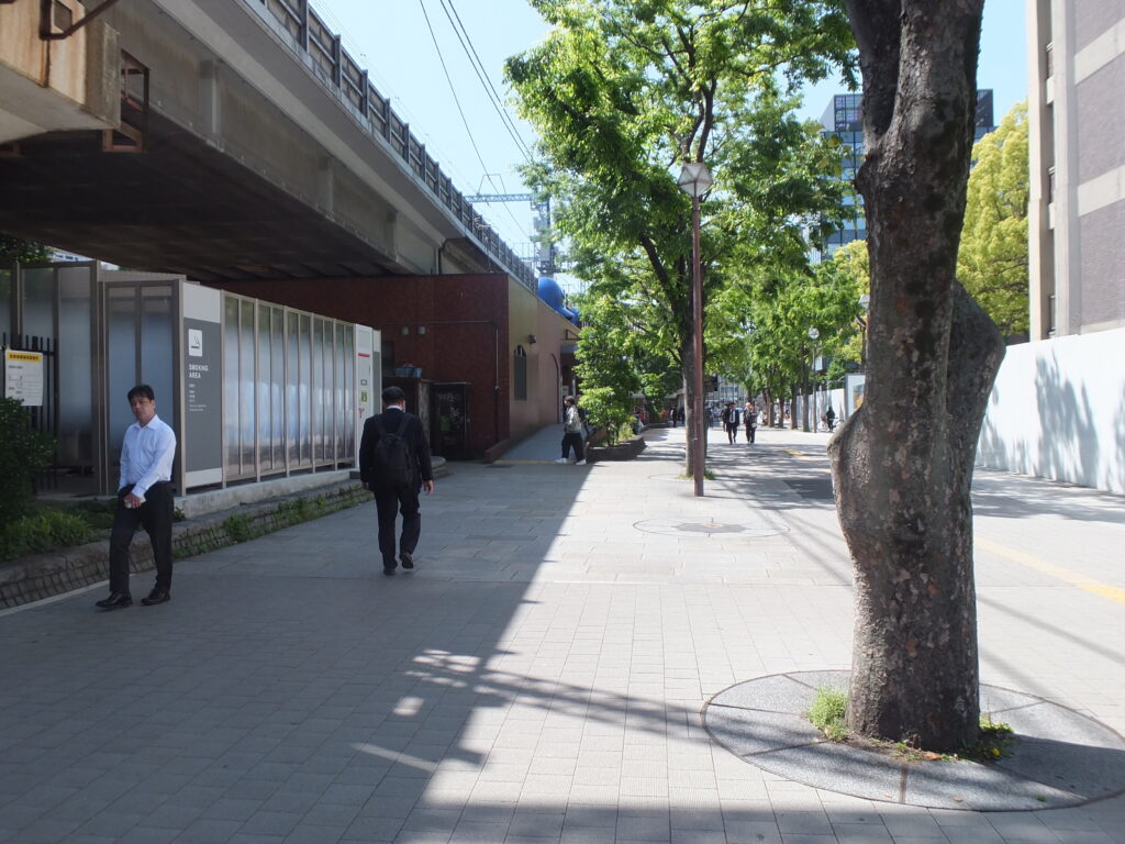 渡った先を左側に行きましょう。