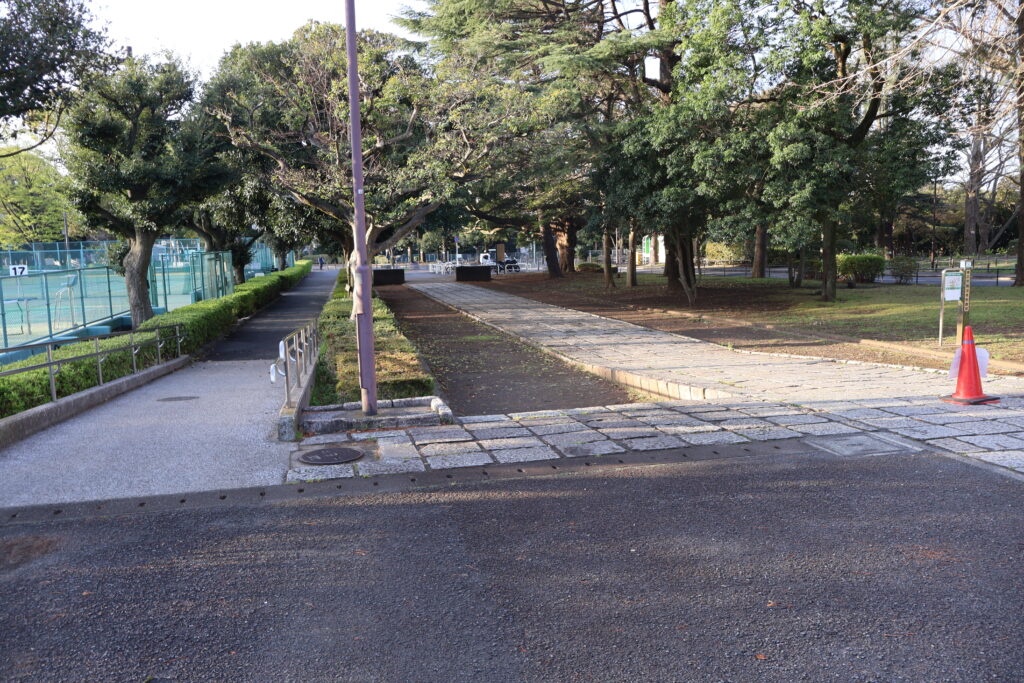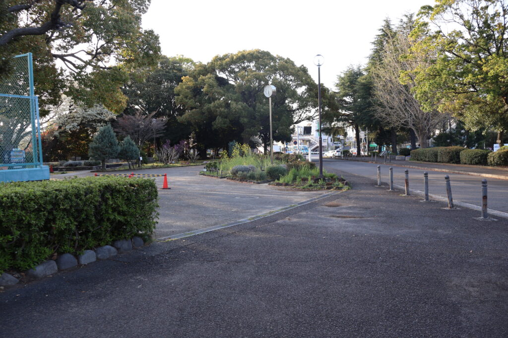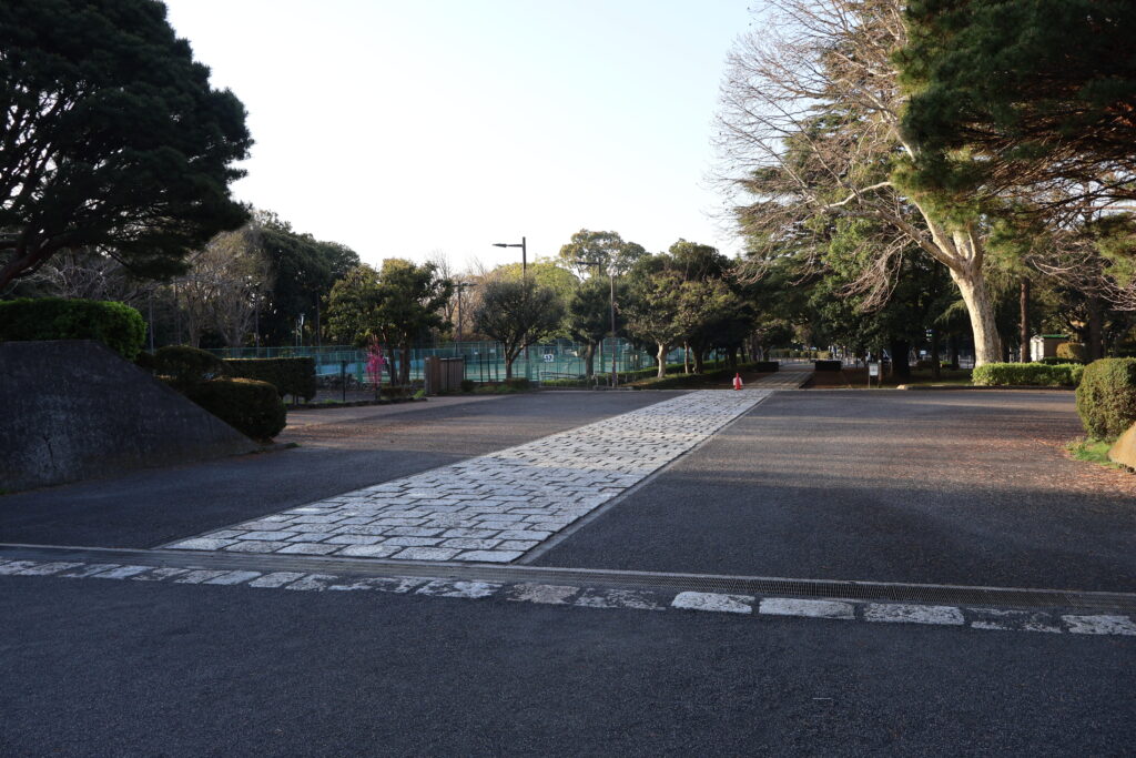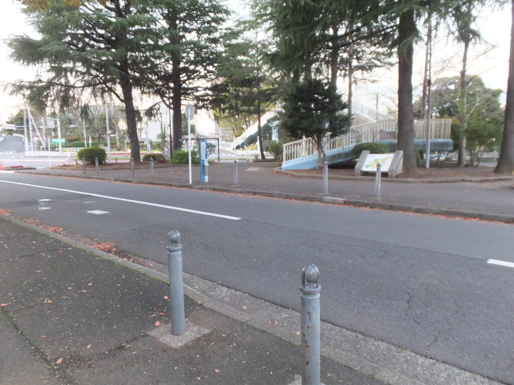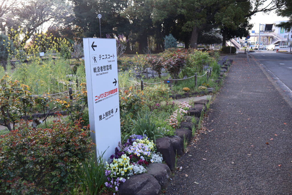 この花壇の先が三ツ沢競技場なので行きましょう。