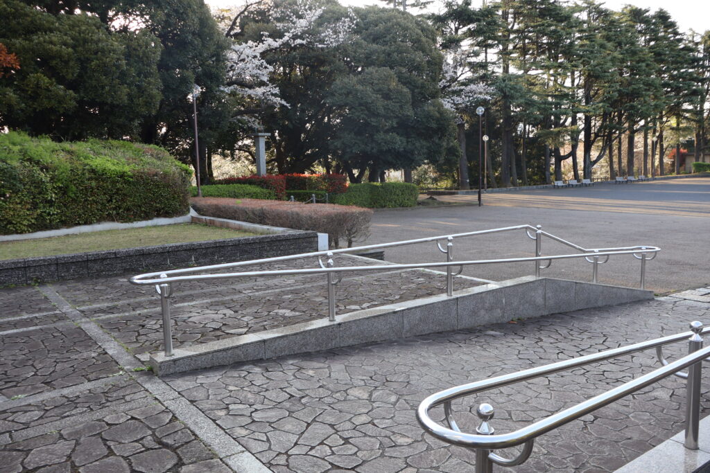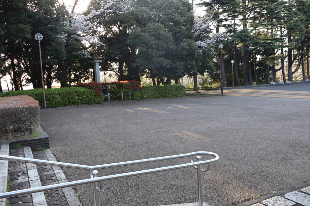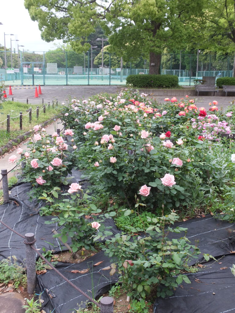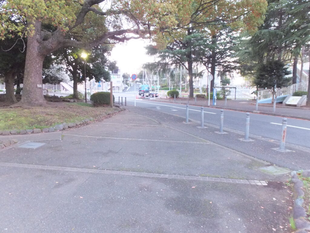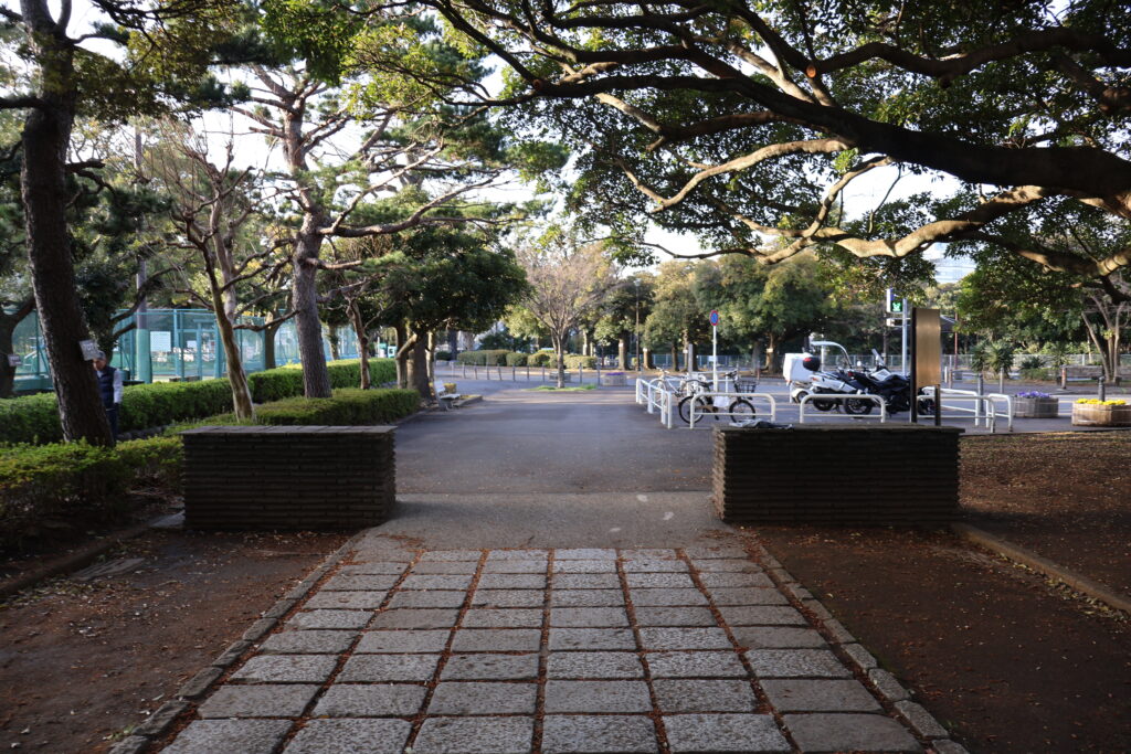 この花壇の先が三ツ沢競技場なので行きましょう。