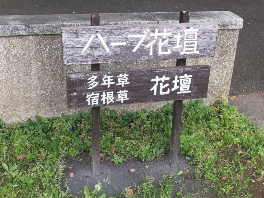 曲がった先には「ハーブ花壇」がありました(p_-)