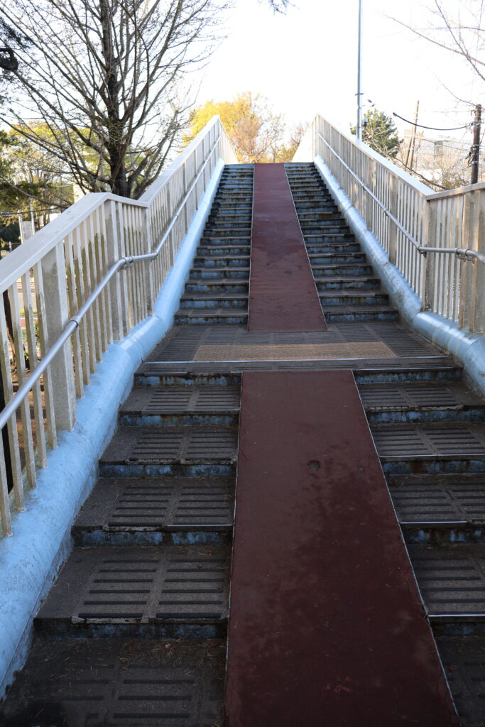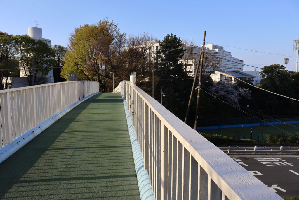 地図を見てみると歩道橋を渡った先が三ツ沢競技場ですので左側の