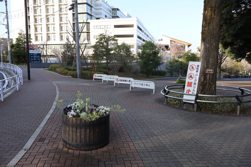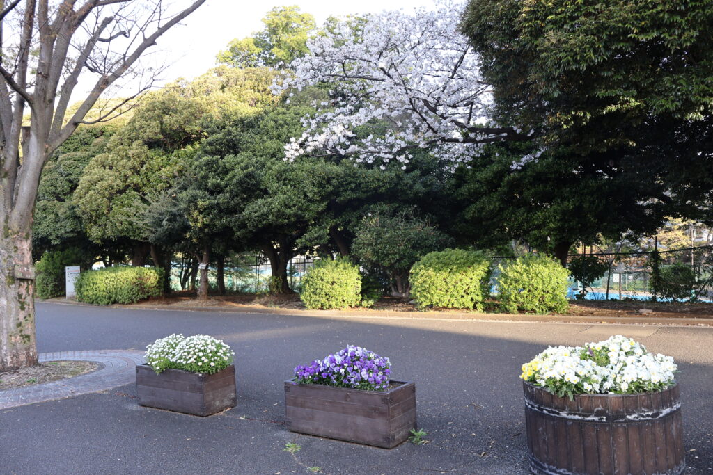 右側の花壇にスミレなどの花が咲いていて春を感じますねぇ!(^^)!