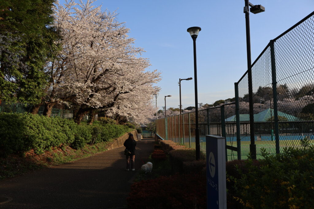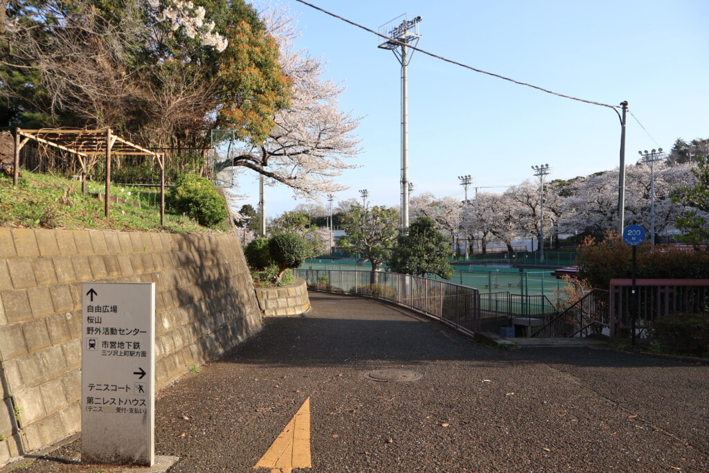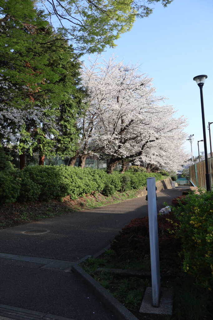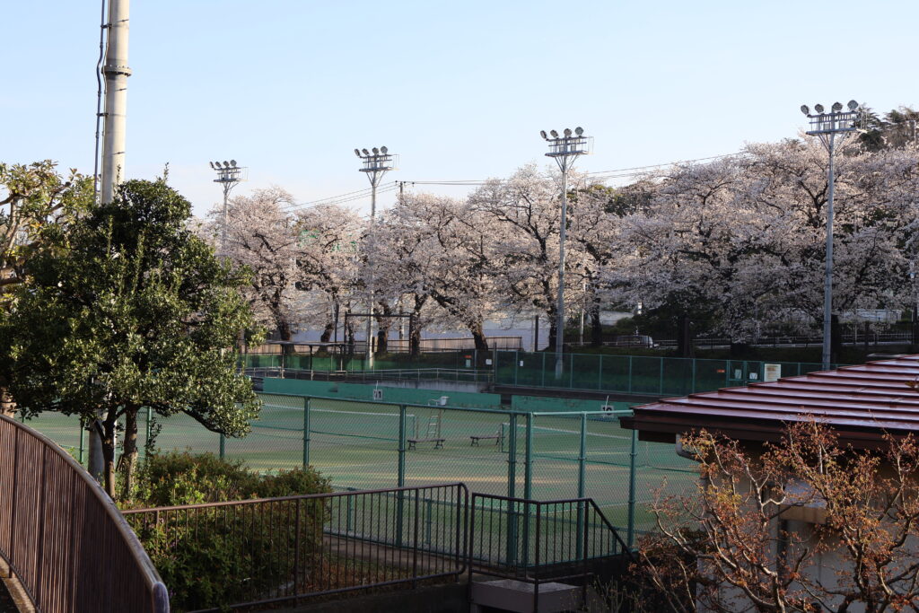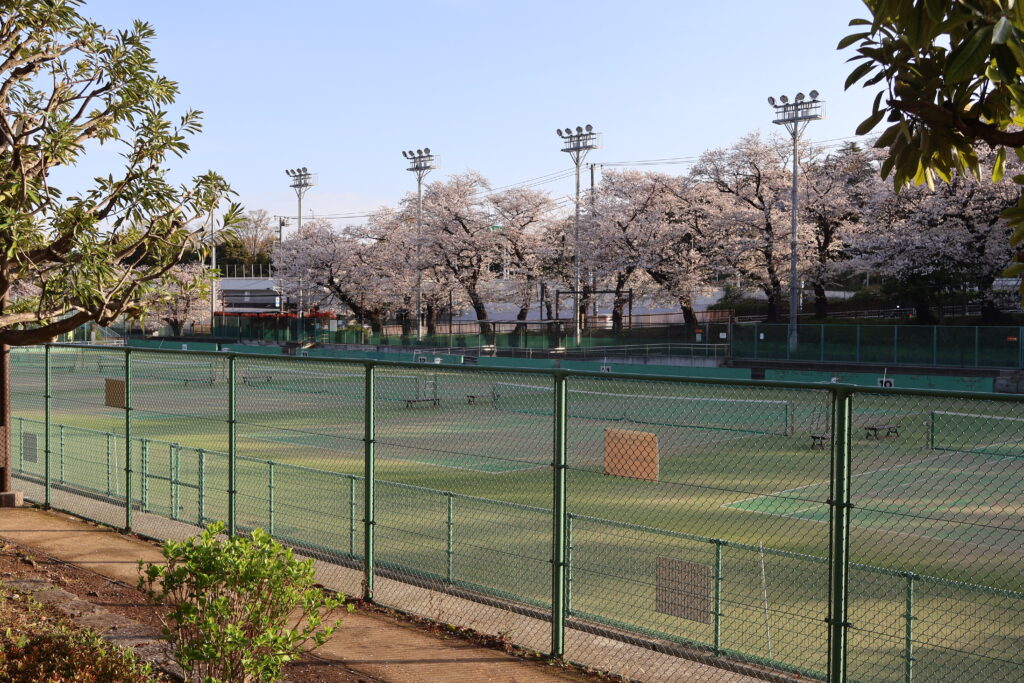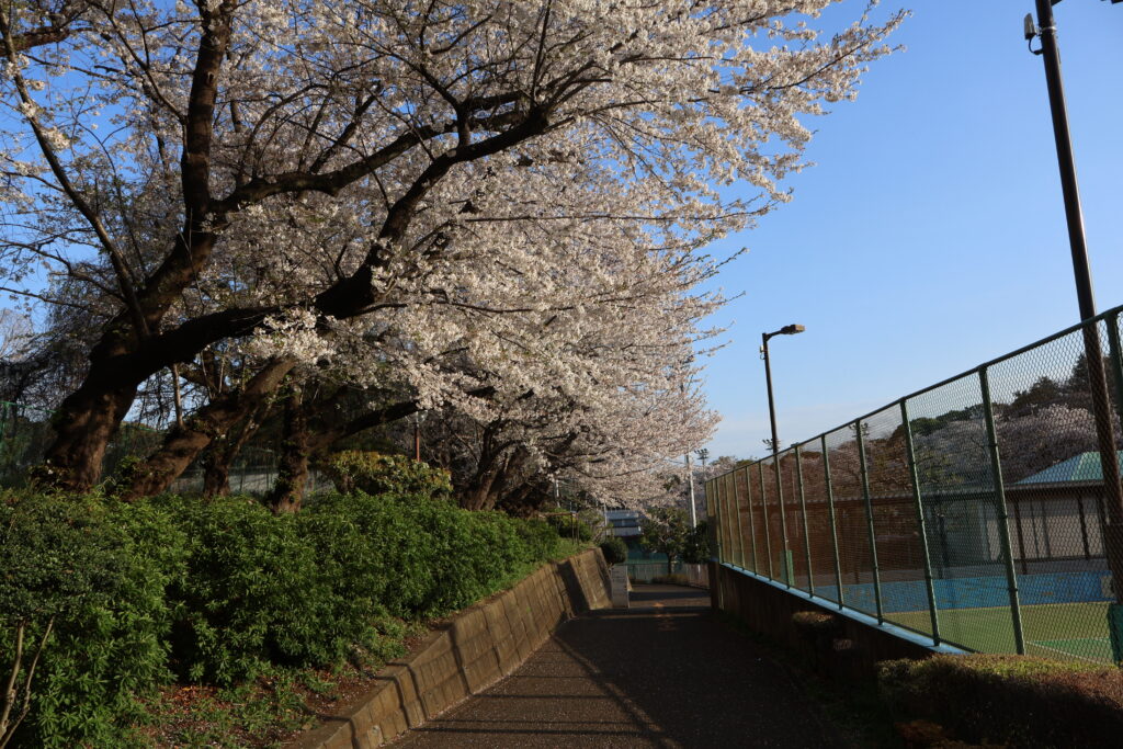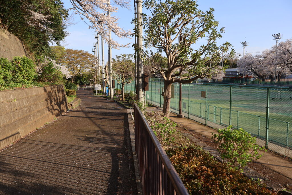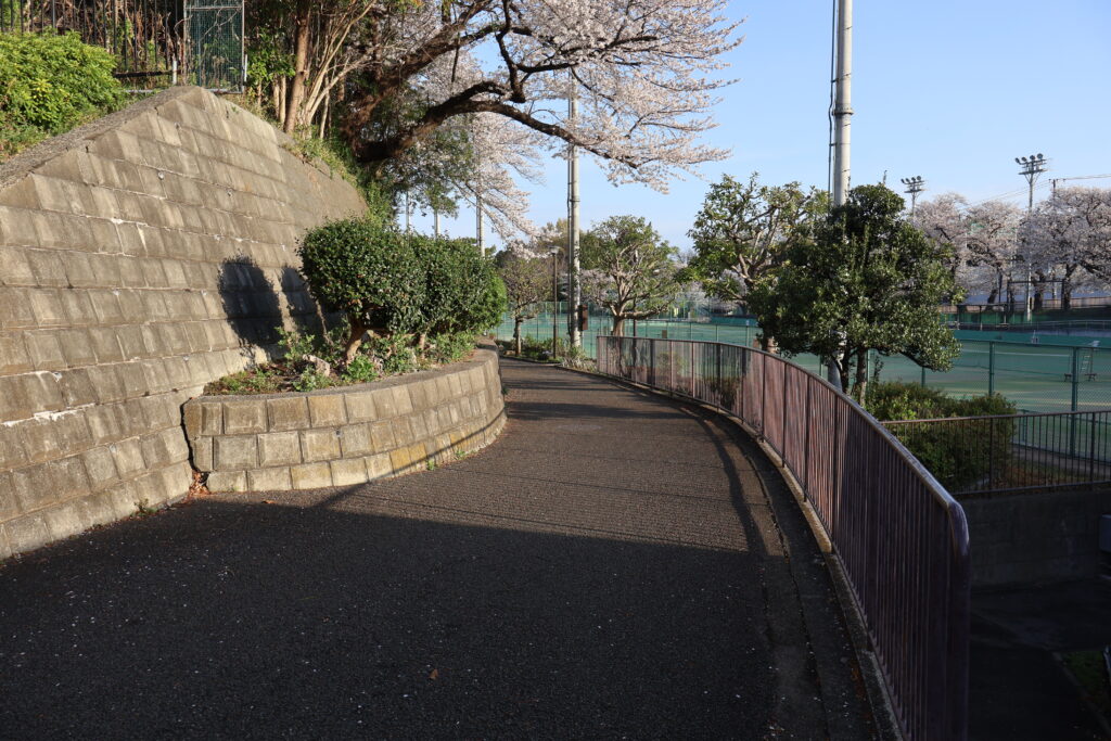 右側に桜並木がありますのでテニスコートの脇を通って行ってみましょう。