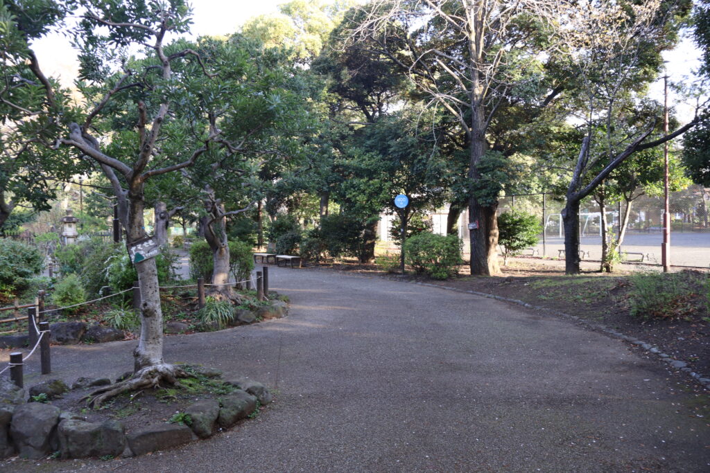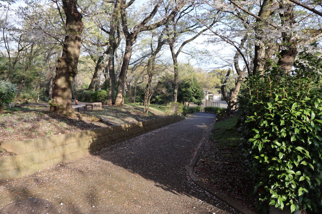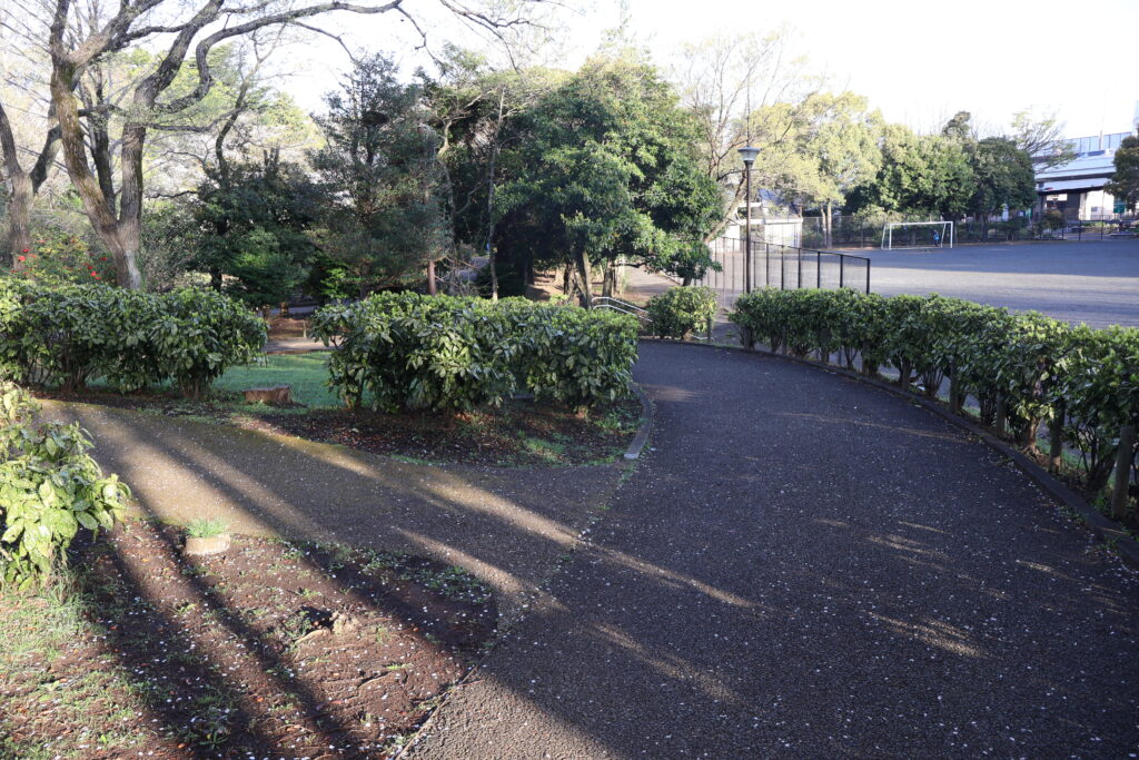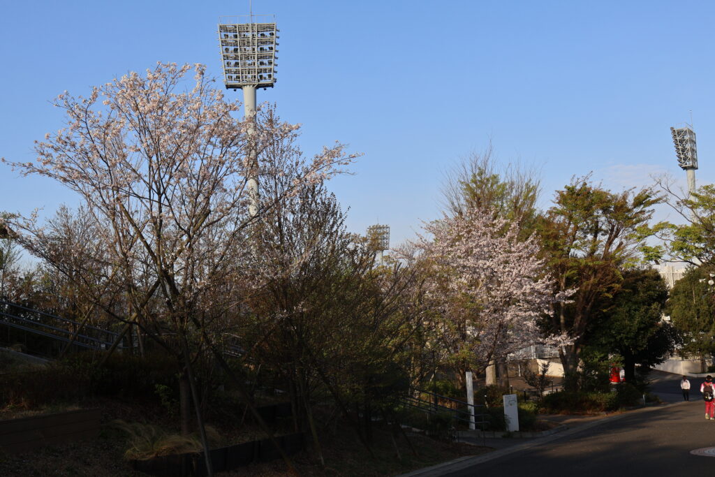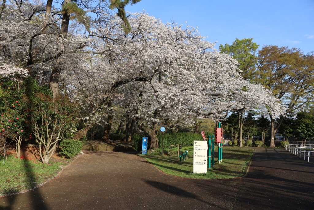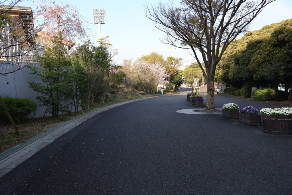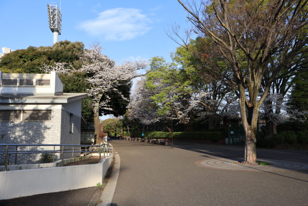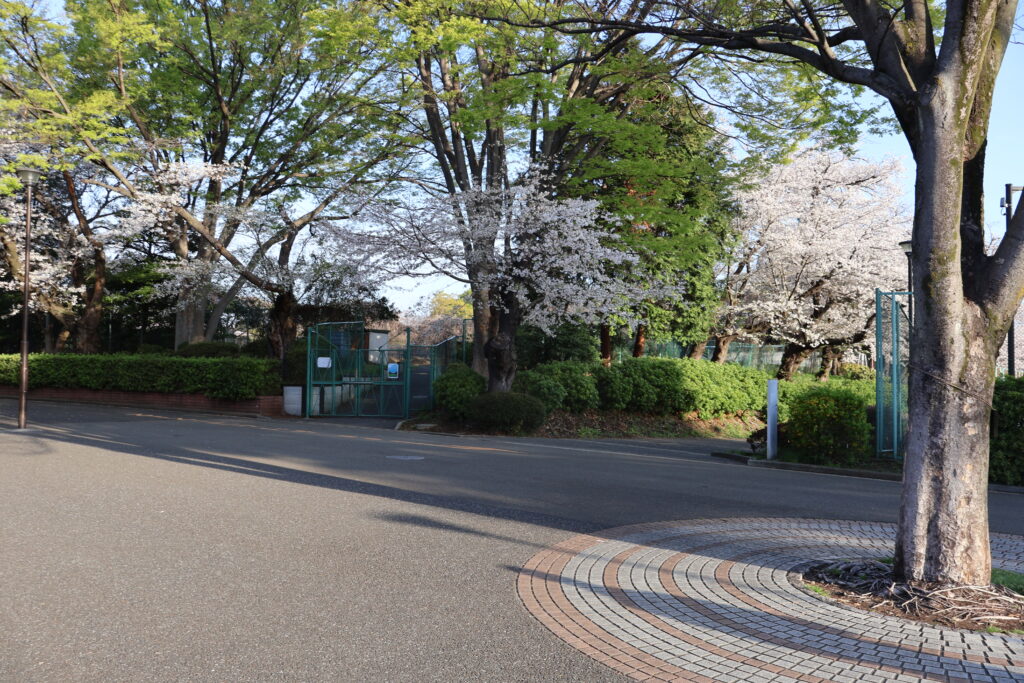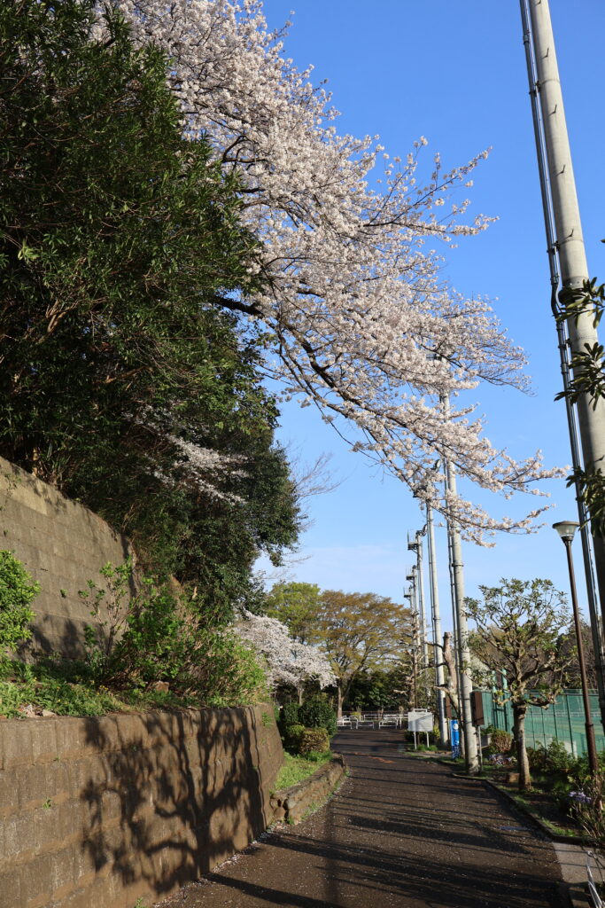 右側に桜並木がありますのでテニスコートの脇を通って行ってみましょう。